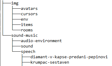 - sound-music/sound: V této složce by jste měli mít uloženy zvuky, které budou použity v průběhu hry, například po nějaké akci. Hudbu ukládejte ve formátu .mp3