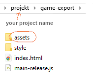 ({preferovaná složka s projektem}/game-export/assets) engin si tak připraví data pro první